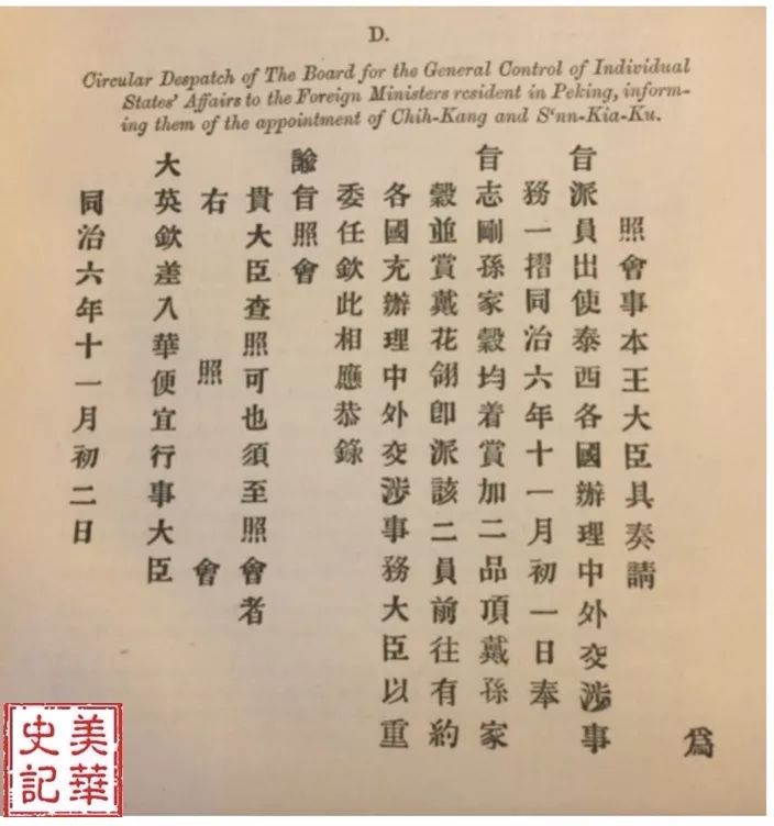 图8 任命志刚、孙家谷中外交涉事务大臣Johannes Von Gumpach, The Burlingame Mission: A Political Disclsure. Shanghai, London, and New York, 1872 P.34