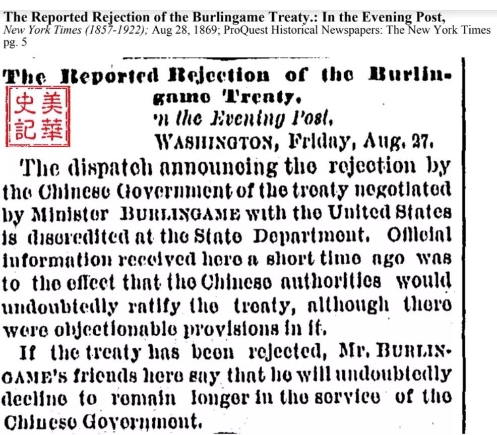 图12 纽约时报对中国是否签署《蒲安臣条约》的报道和猜测