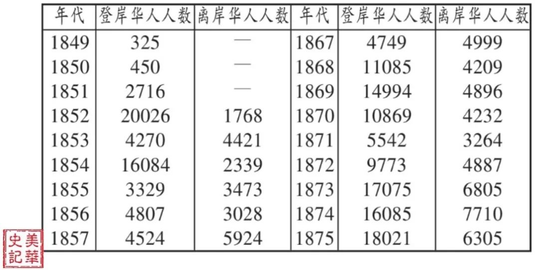 图16 三藩市海关记录的登岸离岸华人人数表