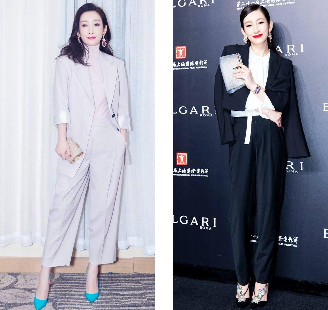 特别是穿西装,配简单的头发和红唇,干净利落,很有大姐大的风范,浑身上下都写着不好惹,最适合她这种狠角色。