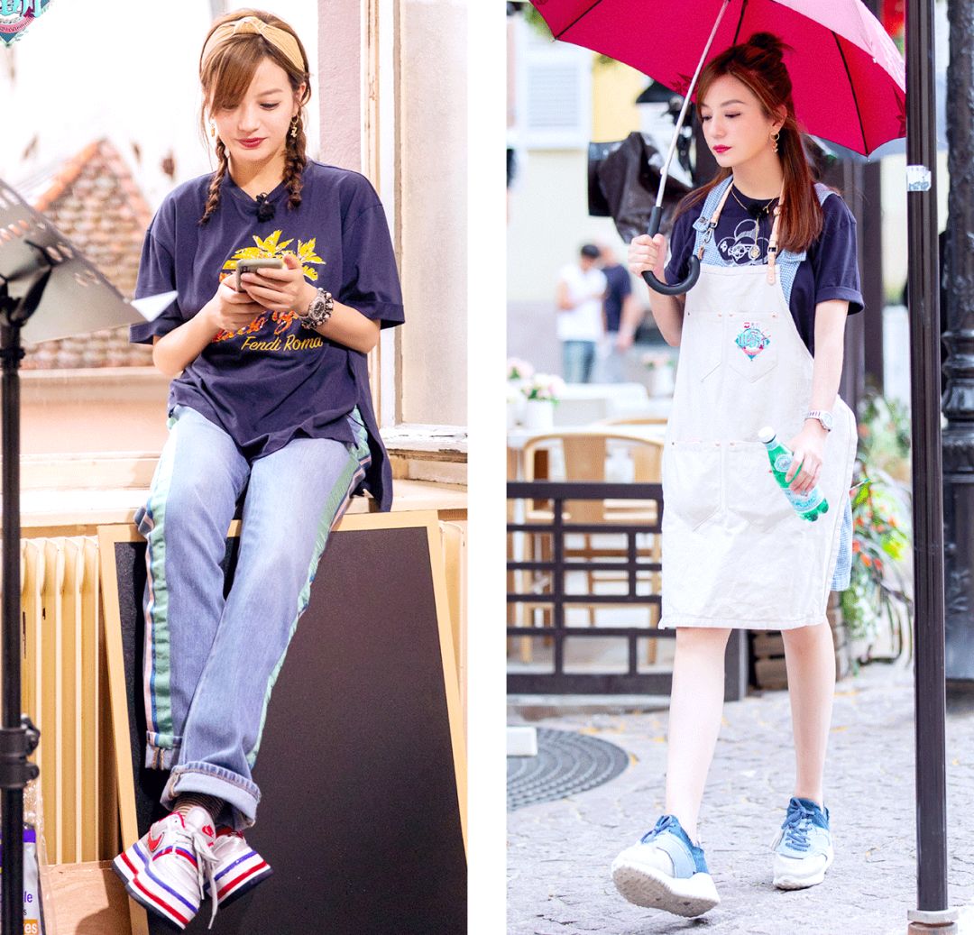 你看上一季《中餐厅》里的赵薇、舒淇基本上是T恤、长裤走天下,就算歇业外出,也还是牛仔裤配运动鞋就出门了。