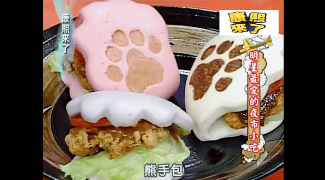 当小吃店老板亲自出马介绍完自己独创的熊掌包之后,秦海璐跟旁边陶虹小声说了一句:“台湾肉夹馍嘛”。可能太尴尬了,镜头和字幕都没有给。