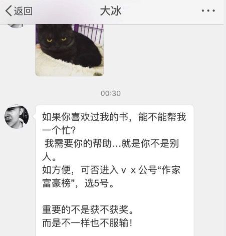 野生大冰号召粉丝给自己在「作家富豪榜」的排名拉票。 并且表示,重要的不是获奖,而是不服输。