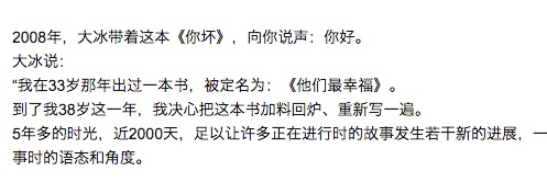 所以,《好吗,好的》40万字用了一个月,《你坏》是五年前《他们最幸福》的加料回炉重造。
