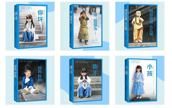 七年七本书,书全部是蓝色封皮,外加一个小朋友大图写真。