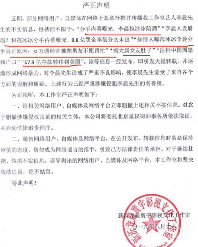 李晨公司从以上严厉公开信当中谴责了最近互联网上面的虚假谣言,并且说只要再持续恶化出去必然会起诉到底。能够看见李晨亦是非常不得已呀……没有料到均早已公布了和平分手了,居然还有这么大离谱的谣传