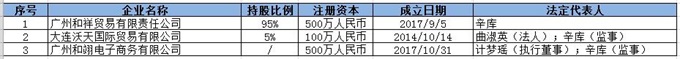 其名下企业主要从事商品批发贸易、互联网商品销售、化妆品及卫生用品批发、化妆品及卫生用品零售、娱乐与文化传播、舞台表演化妆服务等。