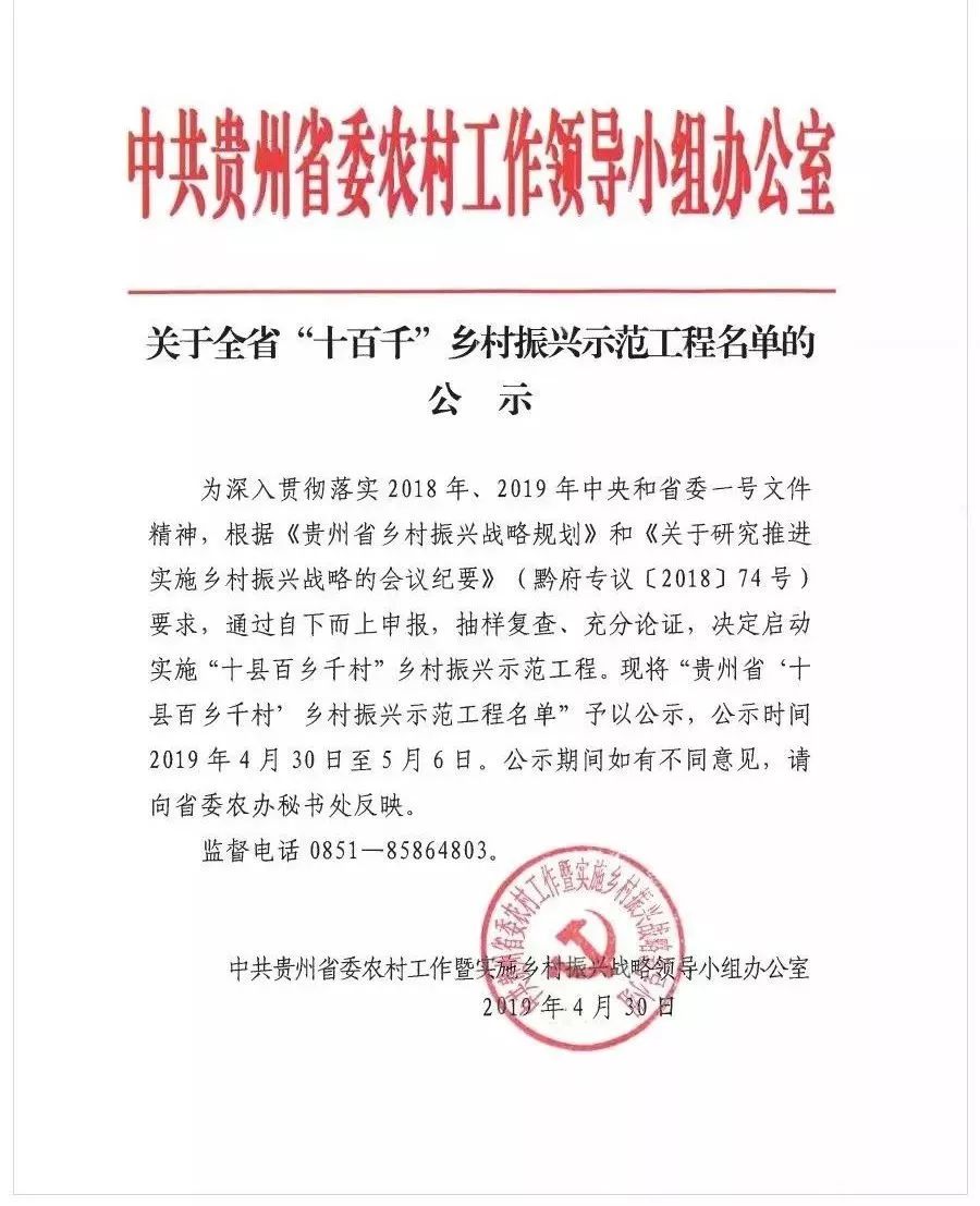 大动作! 贵州将重点建设这10个示范县100个示范乡镇1000个示范村