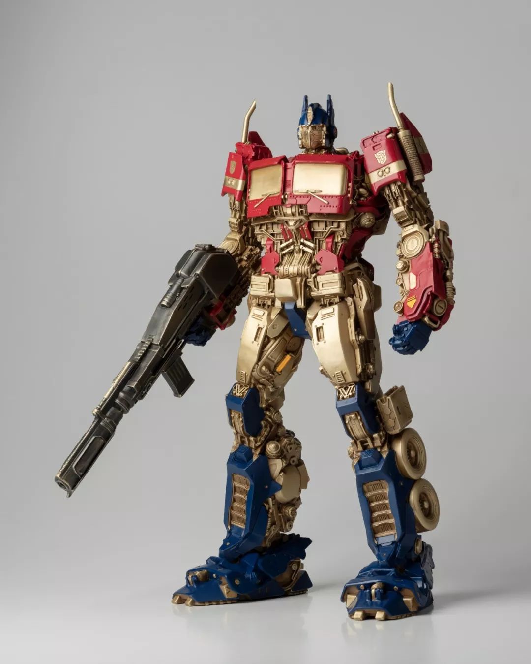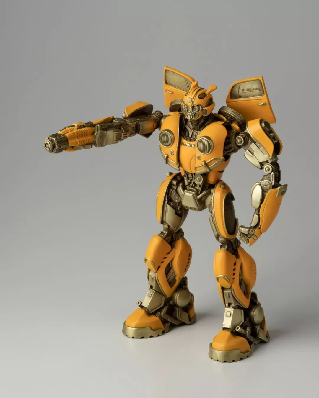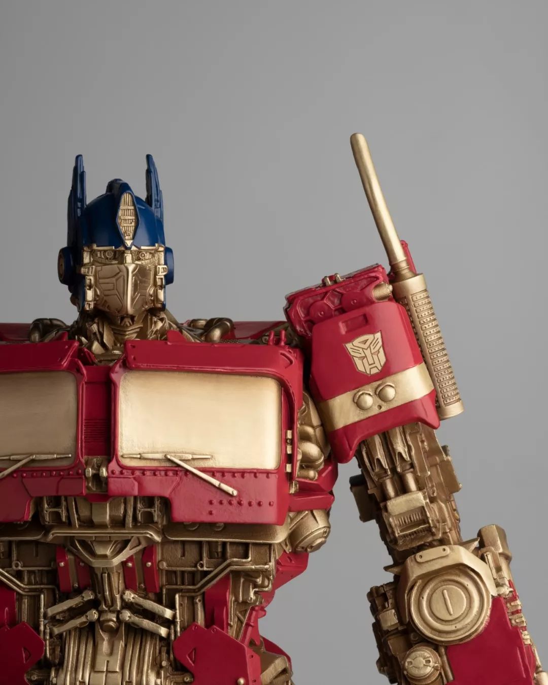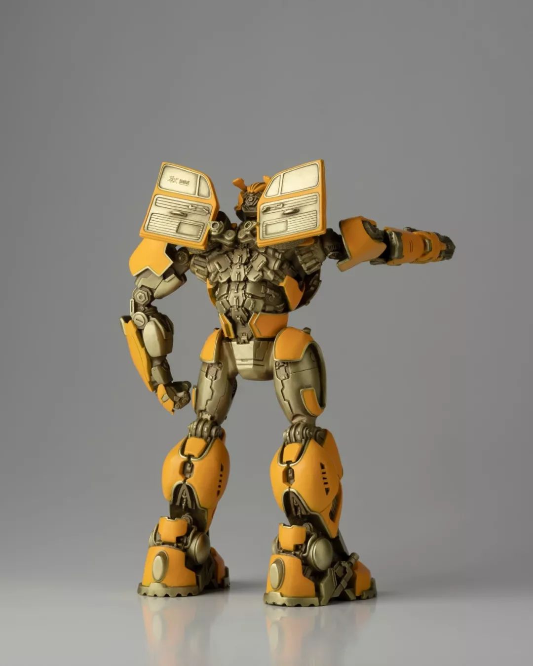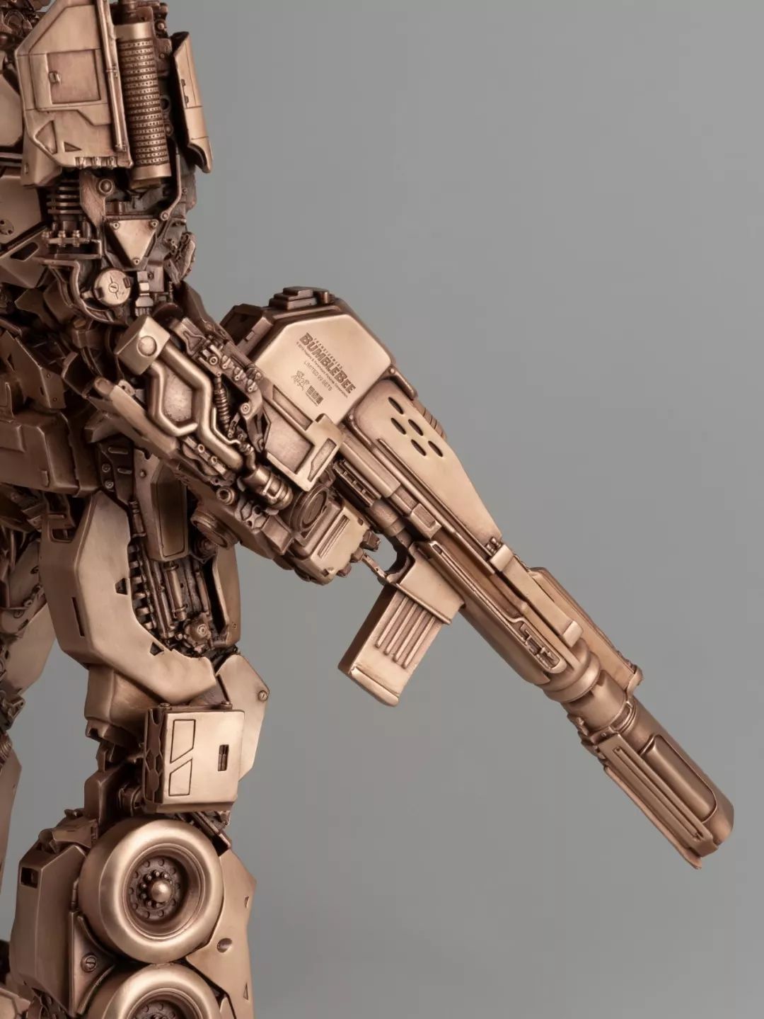 看完电影,我马上问孩之宝要了这批《大黄蜂》中的造型素材,立即布置雕塑团队开始开发,有了第一次的开发经验,这次相对顺利不少,擎天柱、大黄蜂、红蜘蛛、声波、阿尔茜,一个个铸造出来之后,我们团队自己也很喜欢,我们分别用青铜和黄铜都试制了样品,原打算只选一个版本,但是青铜和黄铜各有各的魅力,实在是割舍不下,同事说,都上吧,青铜成本高,限量。