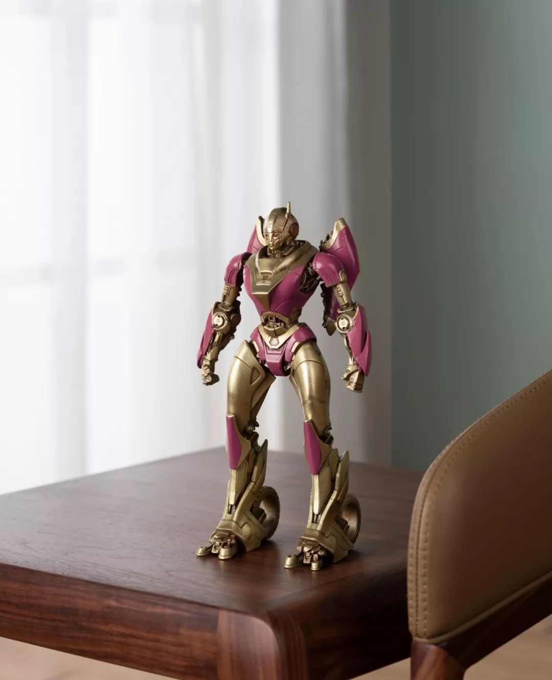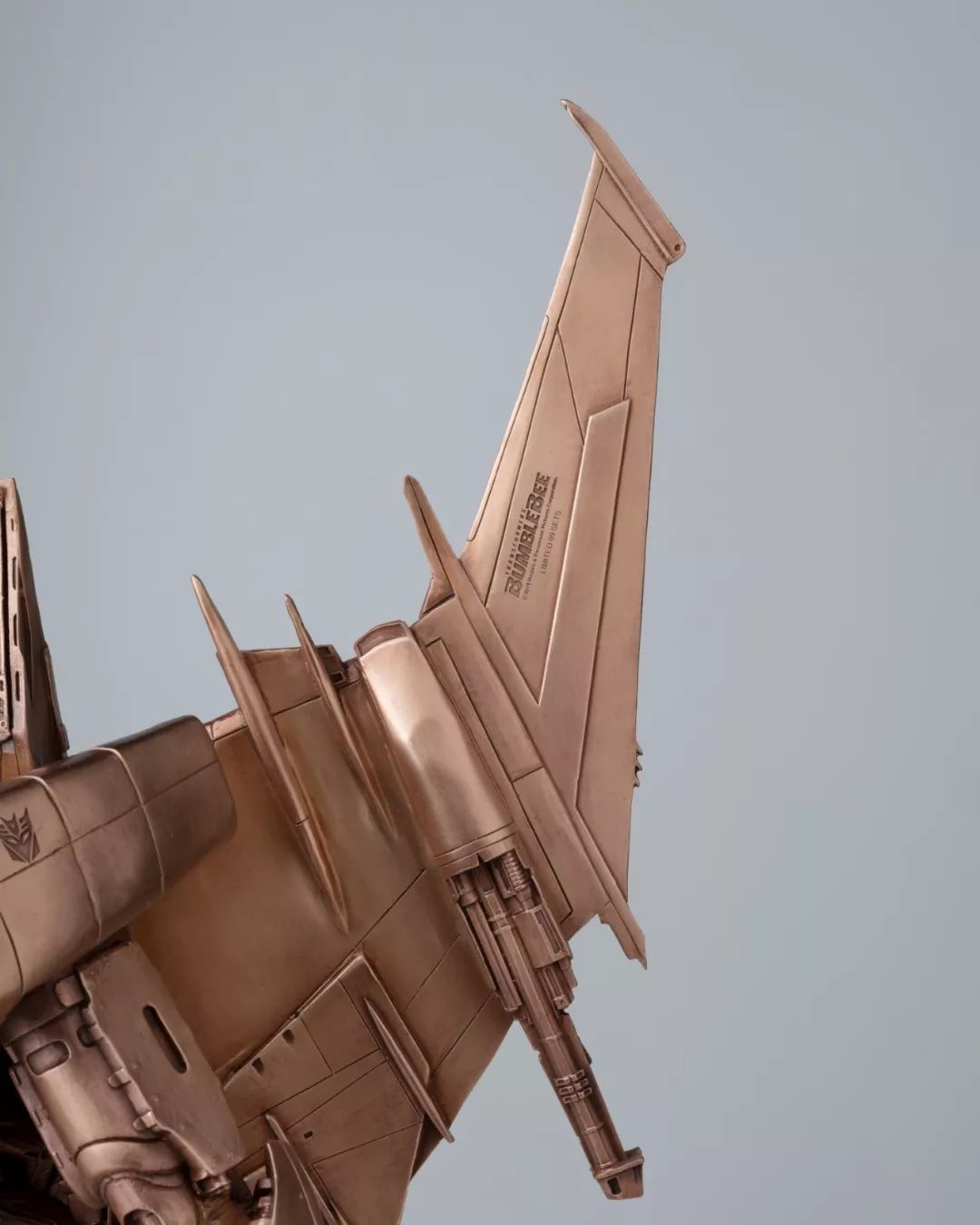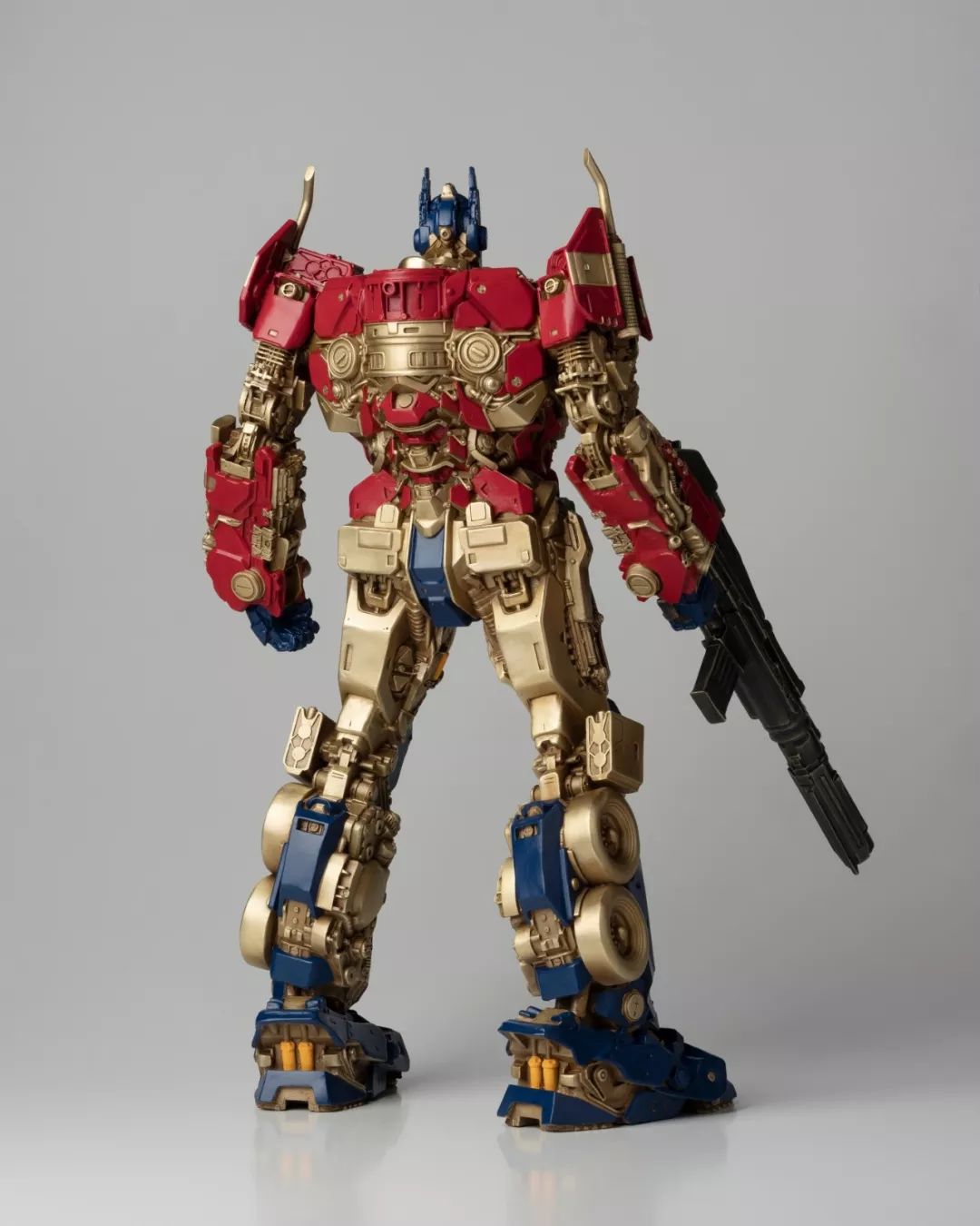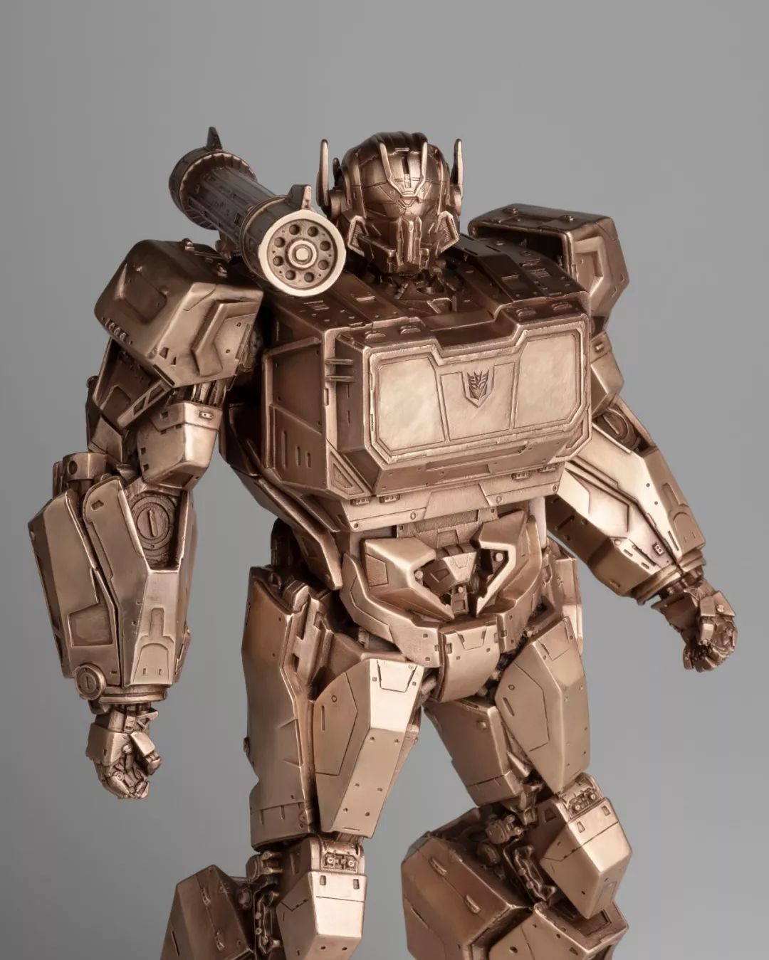 看完电影,我马上问孩之宝要了这批《大黄蜂》中的造型素材,立即布置雕塑团队开始开发,有了第一次的开发经验,这次相对顺利不少,擎天柱、大黄蜂、红蜘蛛、声波、阿尔茜,一个个铸造出来之后,我们团队自己也很喜欢,我们分别用青铜和黄铜都试制了样品,原打算只选一个版本,但是青铜和黄铜各有各的魅力,实在是割舍不下,同事说,都上吧,青铜成本高,限量。