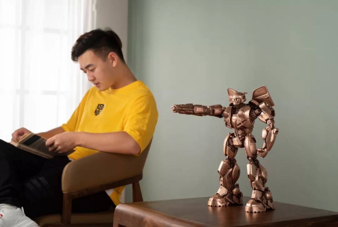 创 办铜师傅之后,有三个题材是我很想开发的,一个是关公,五年前就是因为想请一尊铜关公但被离谱的售价给逼得创办了铜师傅,一个是齐天大圣,中国这么多虚构的或者现实的英雄里面,好像只有他从没被打败过,结局 也算是比较完美,还有一个就是变形金刚,这是我认为最适合用铜来表现的题材。