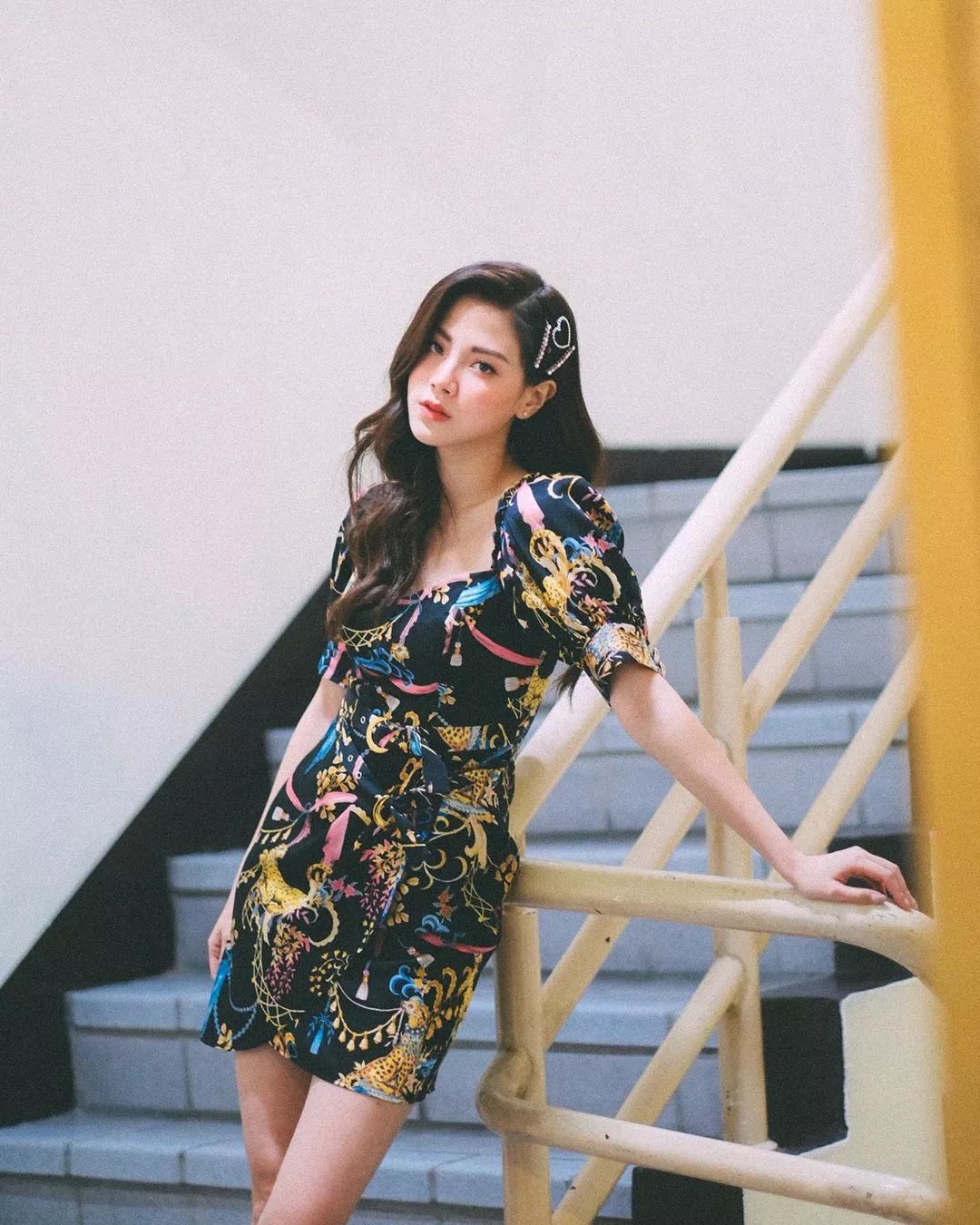 这件复古的印花连衣裙很有女团打歌服的既视感,平采娜穿上后也秒变甜中带酷的女爱豆。