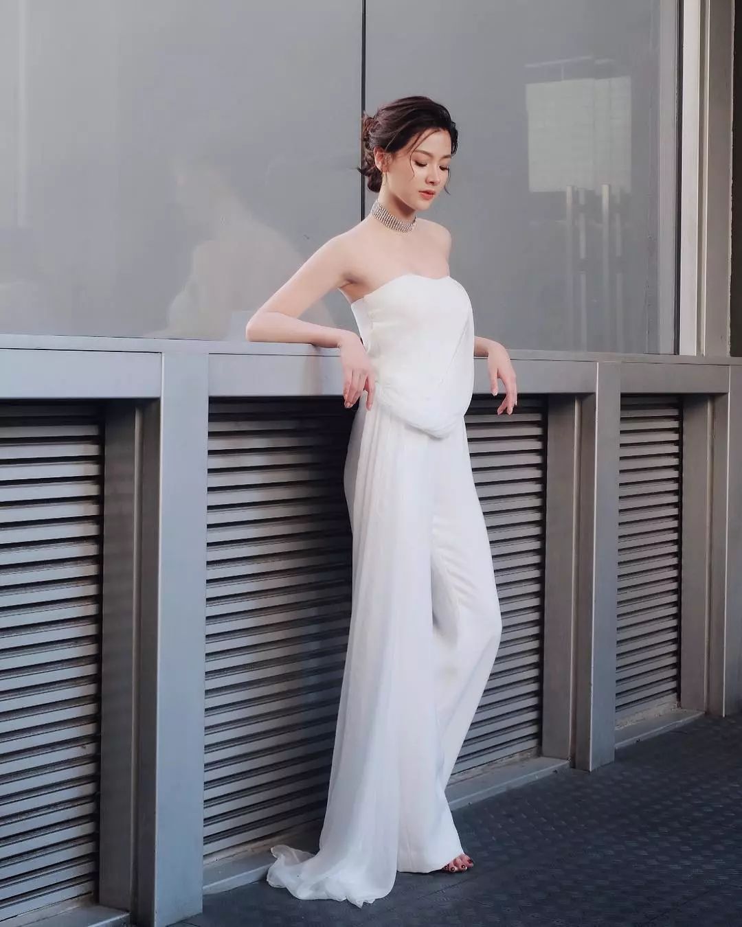 并且平采娜在选择上衣的款式时也会在简洁的基础上挑选可以露出锁骨与好看肩颈线的一字领或抹胸款,看似随性实则小心机满满。