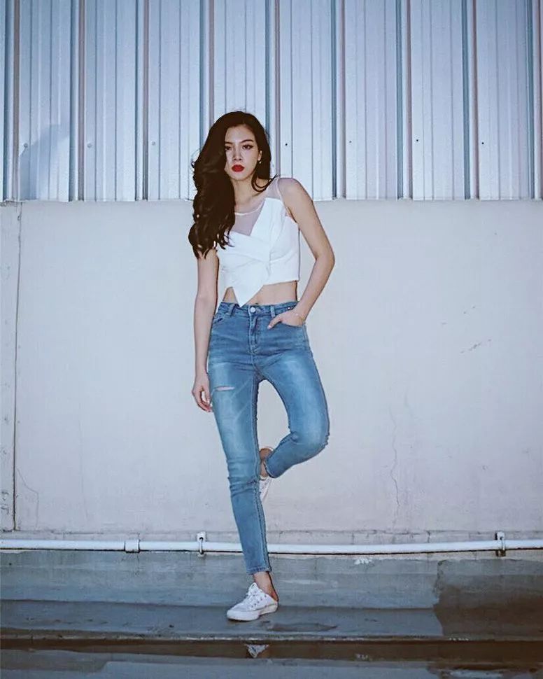 私下里平采娜穿的最多的要数白色系衣服,估计她衣橱里的白色系会占据三分之二之多,为什么这么说?因为她po出来的私服照几乎都是白色上衣搭配牛仔裤。
