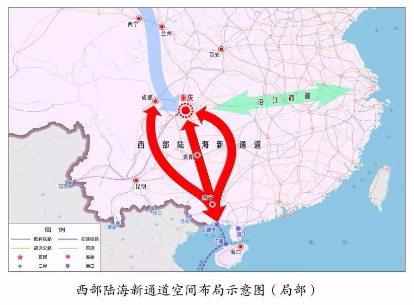 “西部陆海新通道”,是要打通“北部湾”通过重庆、新疆连接欧洲的通道。