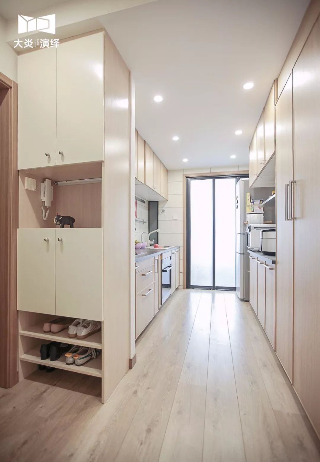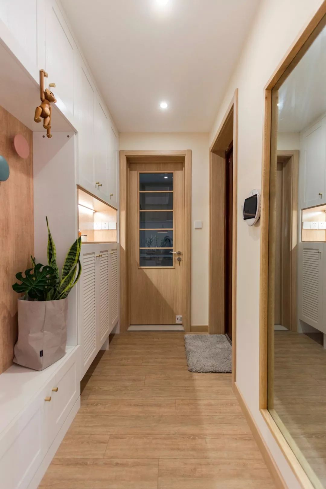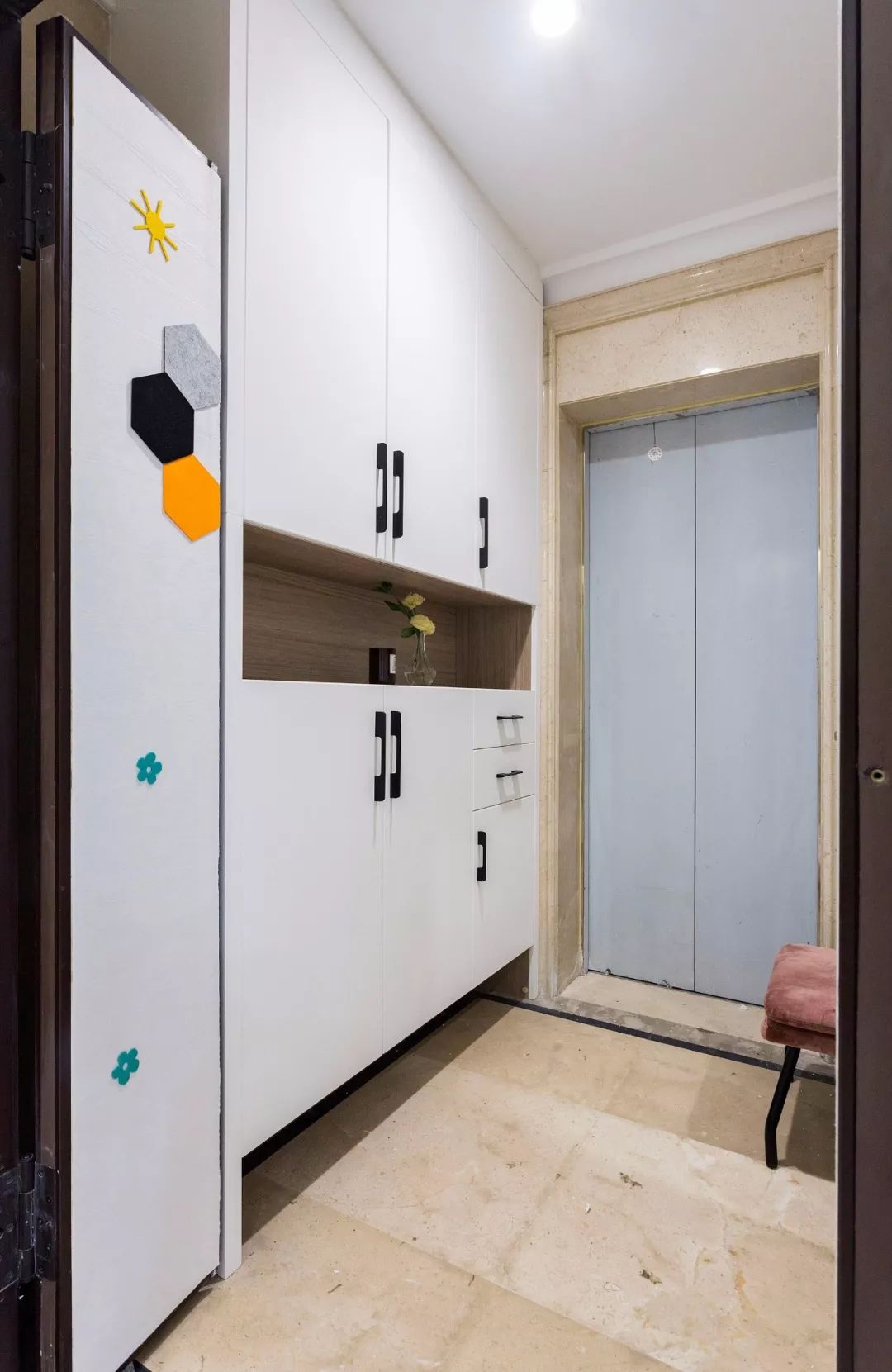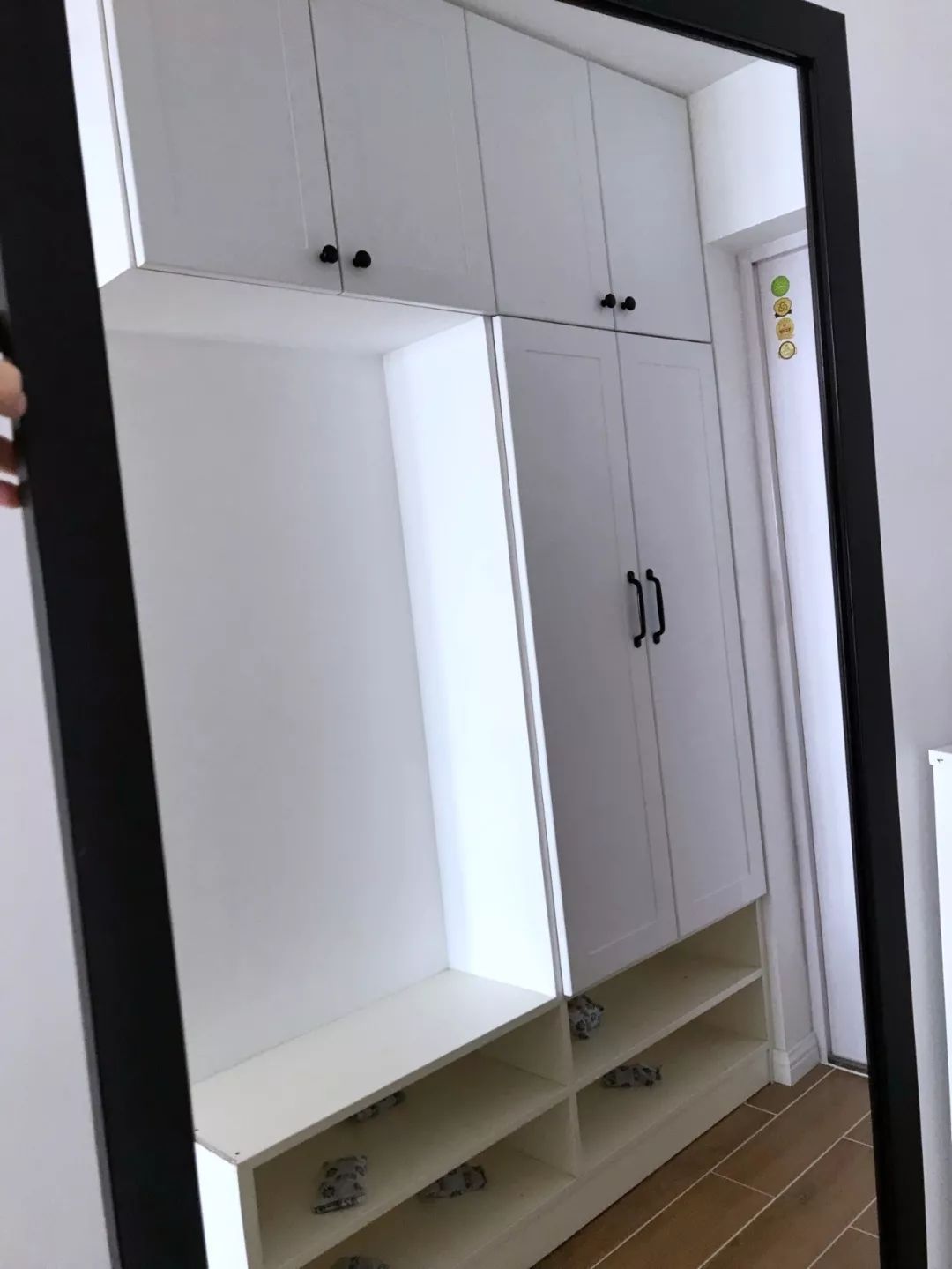 临时换下的鞋柜堵住门口太碍眼了!在鞋柜底部留空出一层,换下的鞋柜“随脚”给踢进去即可,保持进门空间的简洁美观,小小的设计心思,却能让生活更加轻松自然。