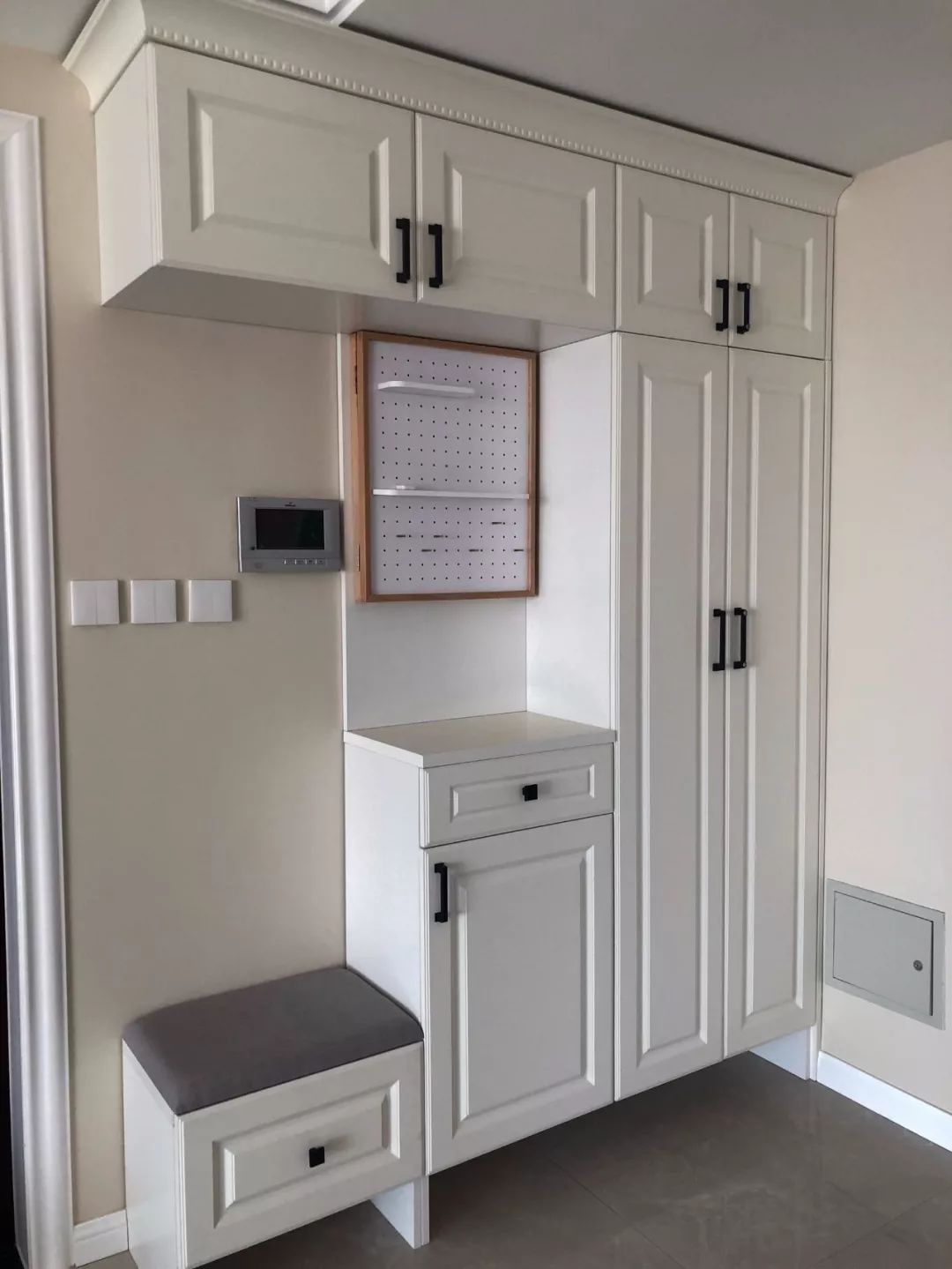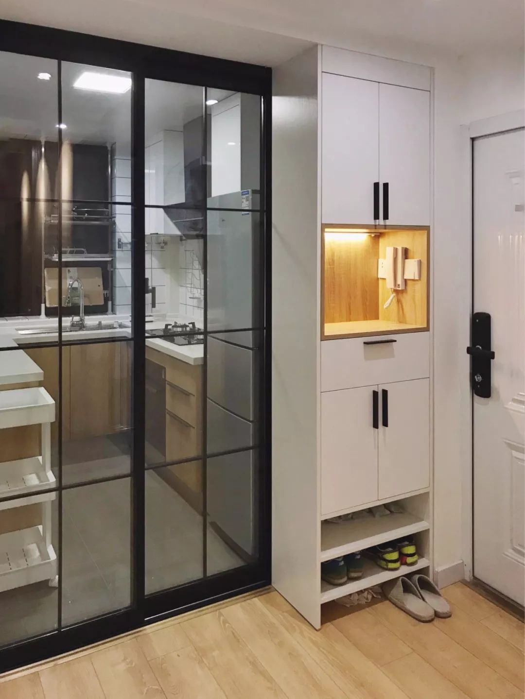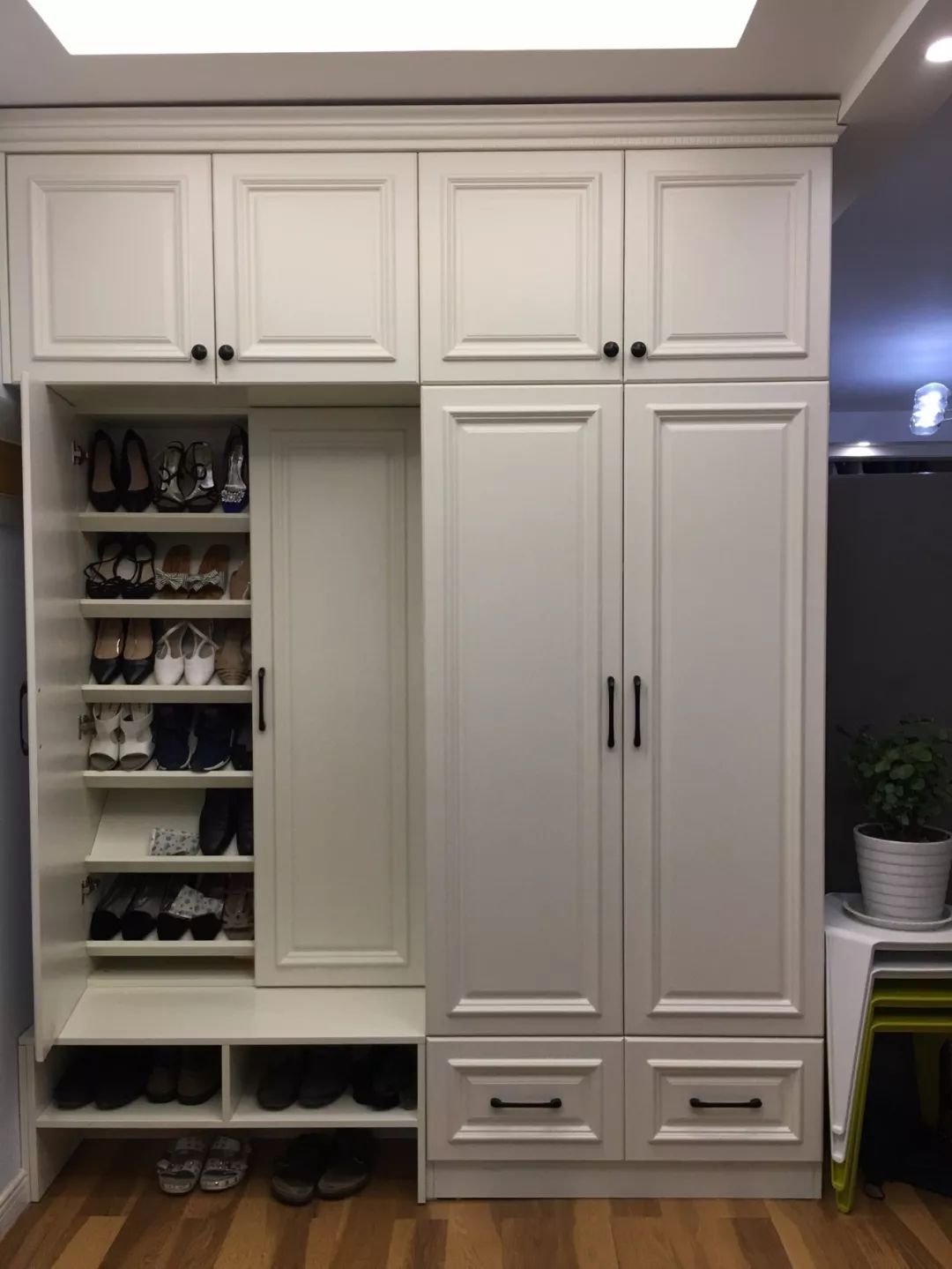 如何让进门空间更加简洁美观,这就需要一个设计合理的鞋柜了,比如在定制鞋柜的时候,在鞋柜底部留空出空层,常换的鞋子就可以放进这里,这样用起来就会方便又美观多了,下面一起来看看这样的鞋柜设计吧!