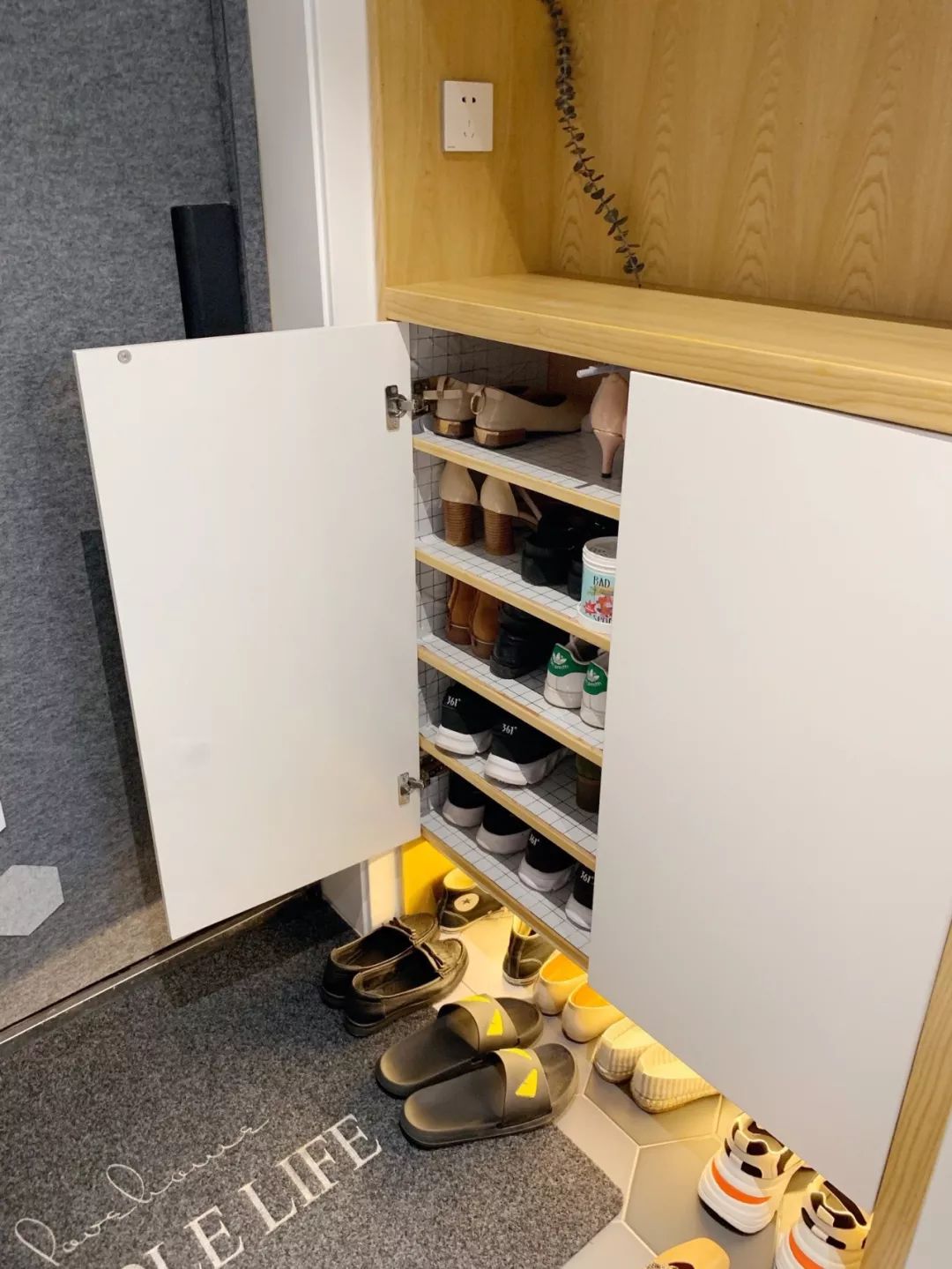 每次回到家,我们要做的第一件事就是换掉外出的鞋子,穿上居家拖鞋,而换下的鞋子通过第二天又要继续穿的,收进鞋柜里的话,第二天又要去翻鞋柜,非常不方便,所以多数人干脆就把临时换下的鞋子堆在进门的位置。
