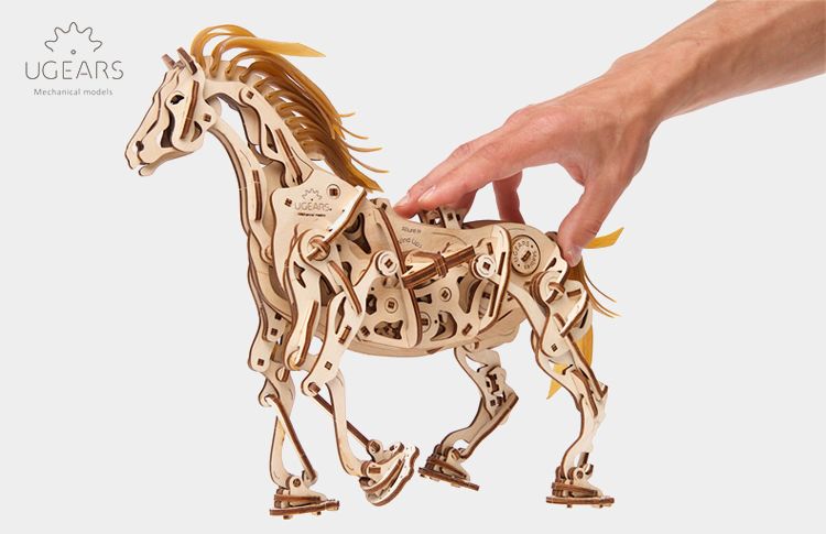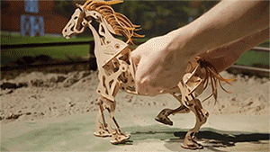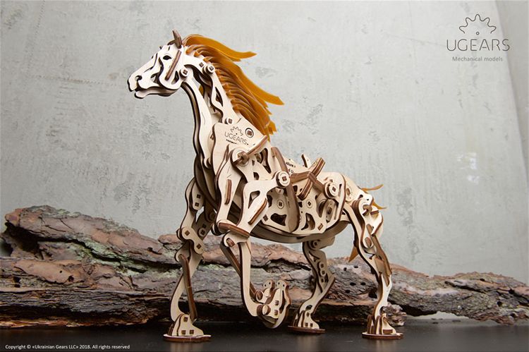 机械木马,410个部件,装配时间预计8~9个小时。以往的四足行走机构,需要通过其它额外支撑实现平衡,Ugears的工程师找到了一种聪明的方法来实现运动的稳定性。虽然由橡皮筋驱动齿轮和曲柄,但所有的关节和运动都与真正的马匹非常相似。