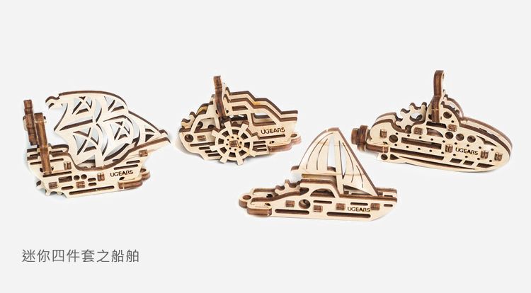 迷你四件套(船舶款),含四款船只,每款都有可活动的部分,简单但不乏有趣。