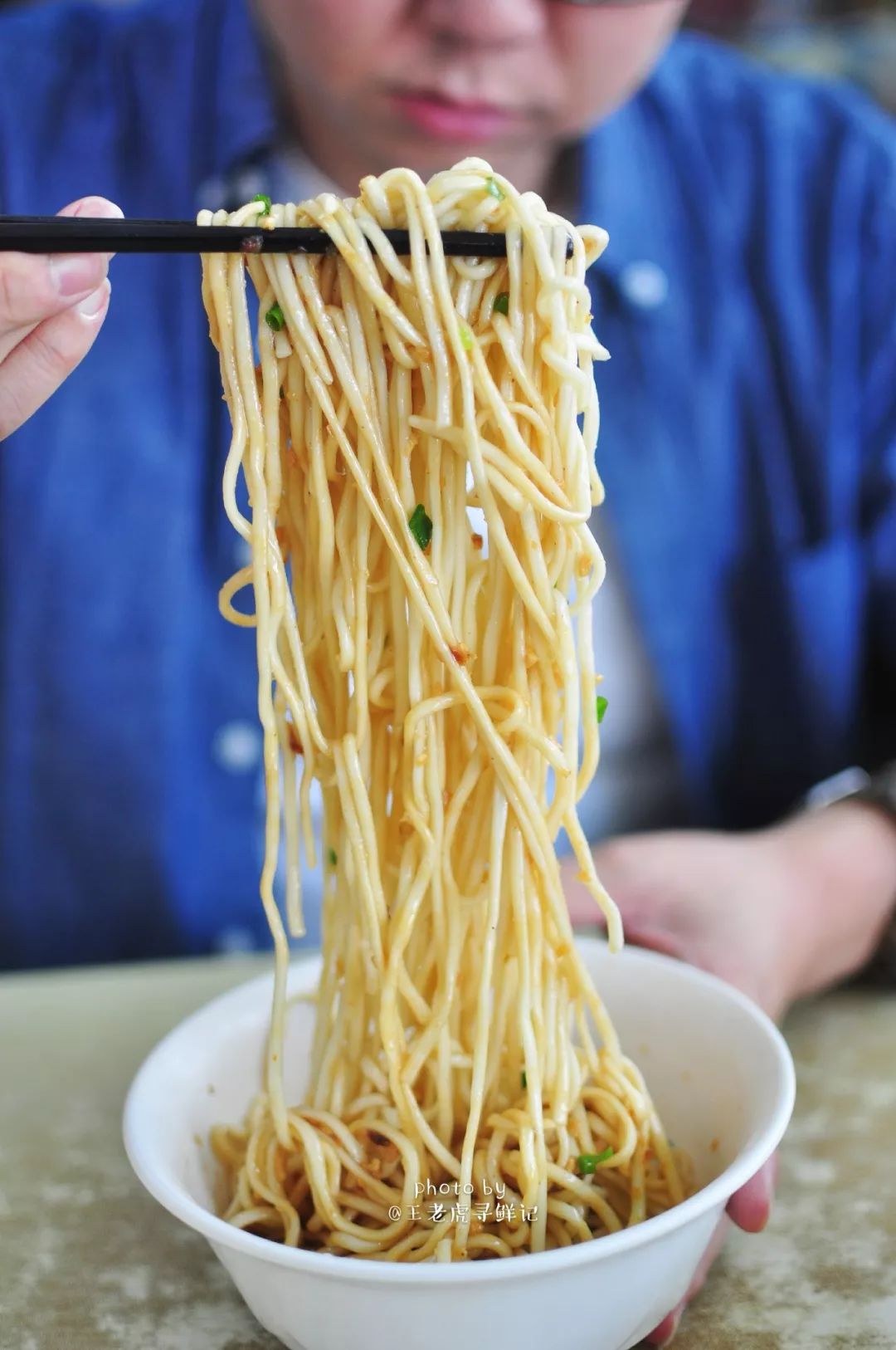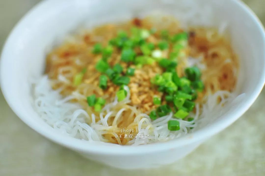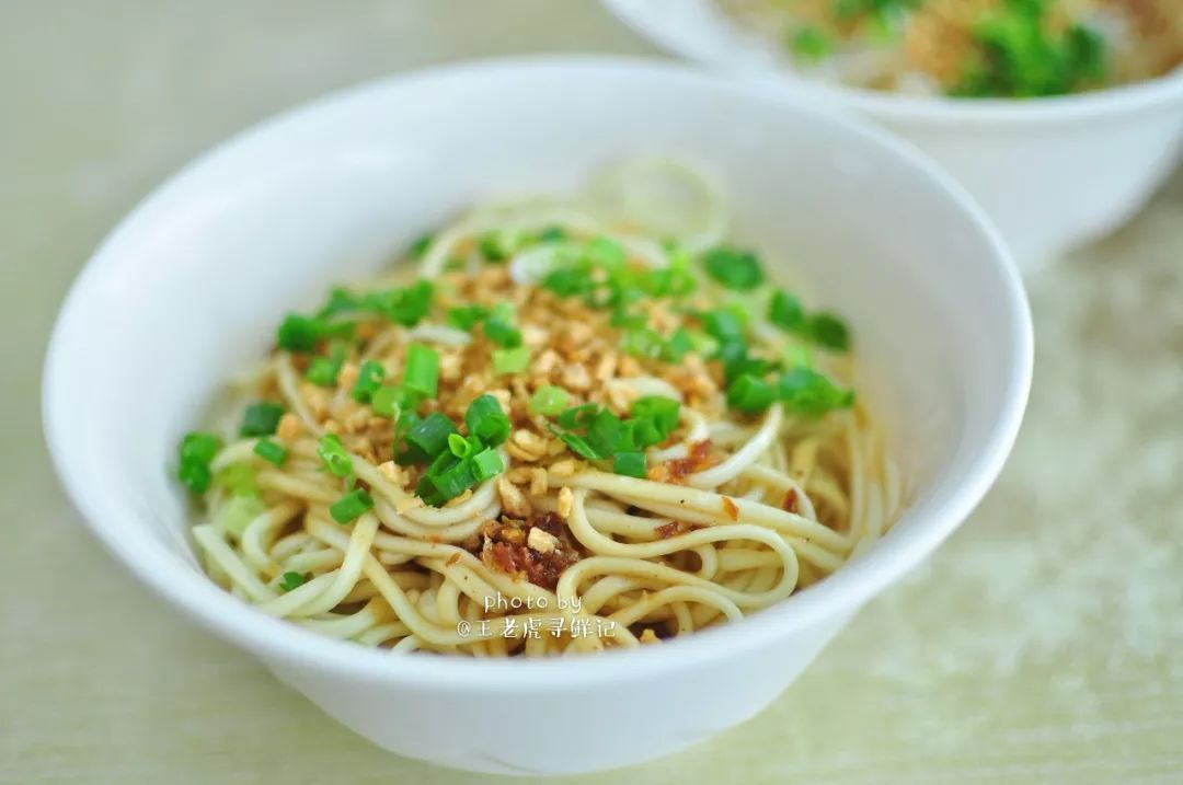 一碗手擀的细且韧的碱面,在沸水锅中滚上几滚,便轻盈的漂浮起来,热气腾腾的弥漫着麦香和水气。一只瓷碗,碗中早就淋了一勺熬好的鲜美的鱼露,一勺热沸的葱猪油兜头泼上,刺啦声中,鱼露的鲜香便喷薄而出了,这葱猪油必须要是现炸的才够香够靓呀,炸油的猪板油要够厚够肥,葱呢,要用大葱的葱白还要再加一些干葱头来炸,单一的葱味是不够香的。而且一定要用热油把碗里的鱼露的味儿“激”出来,腌面的“味儿”才够正。