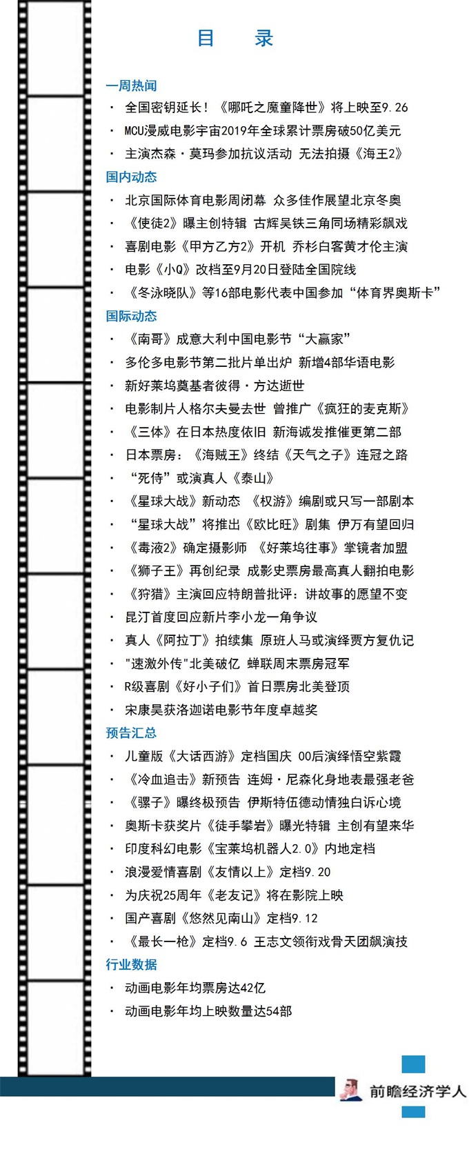 2019-2024年中国电影产业市场前瞻与投资战略规划分析报告
