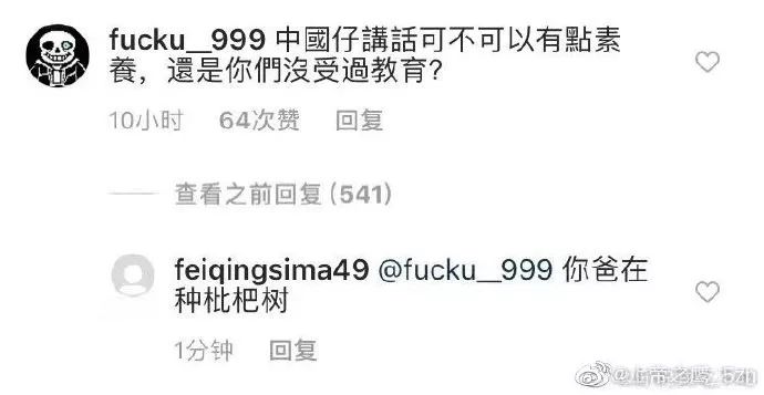 比如前文中提到的#你爸开始种枇杷树了#就是古文中常使用的用典的修辞手法。除此之外,还会用到比喻、类比、双关等等。骂人骂到高级阶段,还要追求押韵,一套freestyle下来,保管骂到对面怀疑人生。