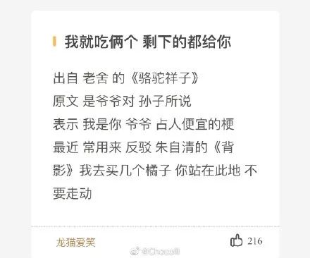 跟这个梗类似的还有出自朱自清《背影》中的#我去买几个橘子,你站在此地,不要走动#,用来占人便宜,意思是“我是你爸爸”。