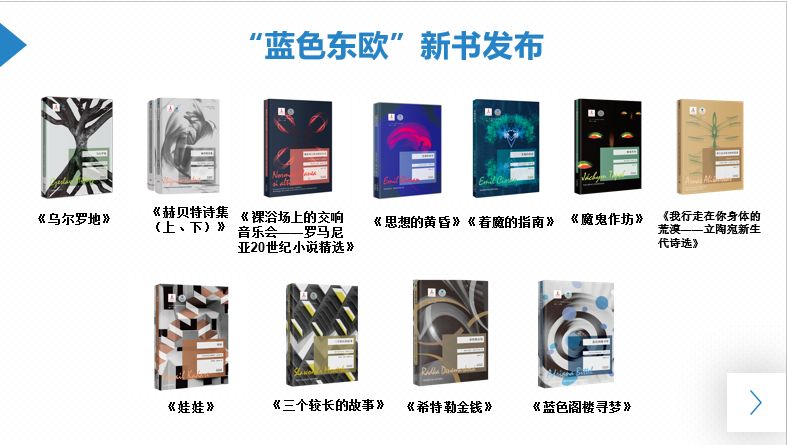 本届BIBF“蓝色东欧”译丛携十一本新书亮相,包括:被誉为切斯瓦夫·米沃什“灵魂自传”、高度体现其深邃思想的随笔集《乌尔罗地》;波兰最杰出的新古典主义诗人、“欧洲文明遗产的继承人”兹比格涅夫•赫贝特的诗歌集《赫贝特诗集(上、下)》;阿尔巴尼亚作家伊斯梅尔·卡达莱献给母亲的回忆之作、展现巴尔干半岛古老的家庭传统和家族文明的非虚构作品《娃娃》;罗马尼亚思想家埃米尔•齐奥朗标志性的断章体随笔集《思想的黄昏》《着魔的指南》;曾获捷克共和国最高文学奖“雅罗斯拉夫•塞弗尔特奖”的雅辛·托波尔长篇小说《魔鬼作坊》;20世纪波兰最重要的剧作家、荒诞派代表作家斯瓦沃米尔•姆罗热克的中篇故事集《三个较长的故事》;被誉为罗马尼亚“八十年代杰出散文家之一”阿德里亚娜•毕特尔的短篇小说集《蓝色阁楼寻梦》;捷克著名作家拉德卡•德内玛尔科娃反思战争和生存的长篇小说《希特勒金钱》;精选了罗马尼亚二十世纪各个时期代表作家作品的《裸浴场上的交响音乐会——罗马尼亚20世纪小说精选》;收入二十六位立陶宛当代青年诗人最具实验性和世界性诗作的《我行走在你身体的荒漠——立陶宛新生代诗选》。