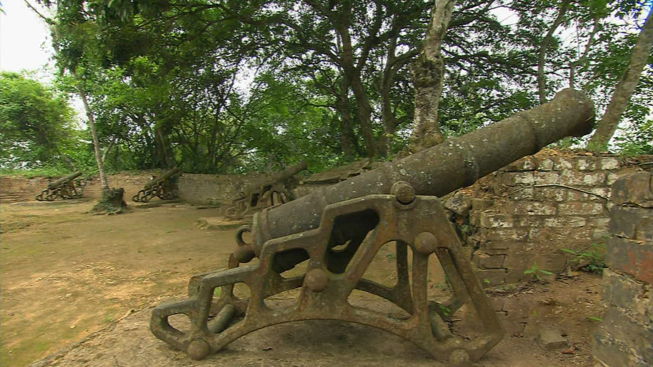 金鸡岭上,共有镇北、镇中、镇南三座炮台,都修建于1885年中法战争之后,当时广西提督苏元春为加强边防防御,在整个广西1000度公里的前线上,都布有这种大炮,如今,在历史的硝烟散去后,昔日的兵家必争之地,也成为人们旅游的去处。