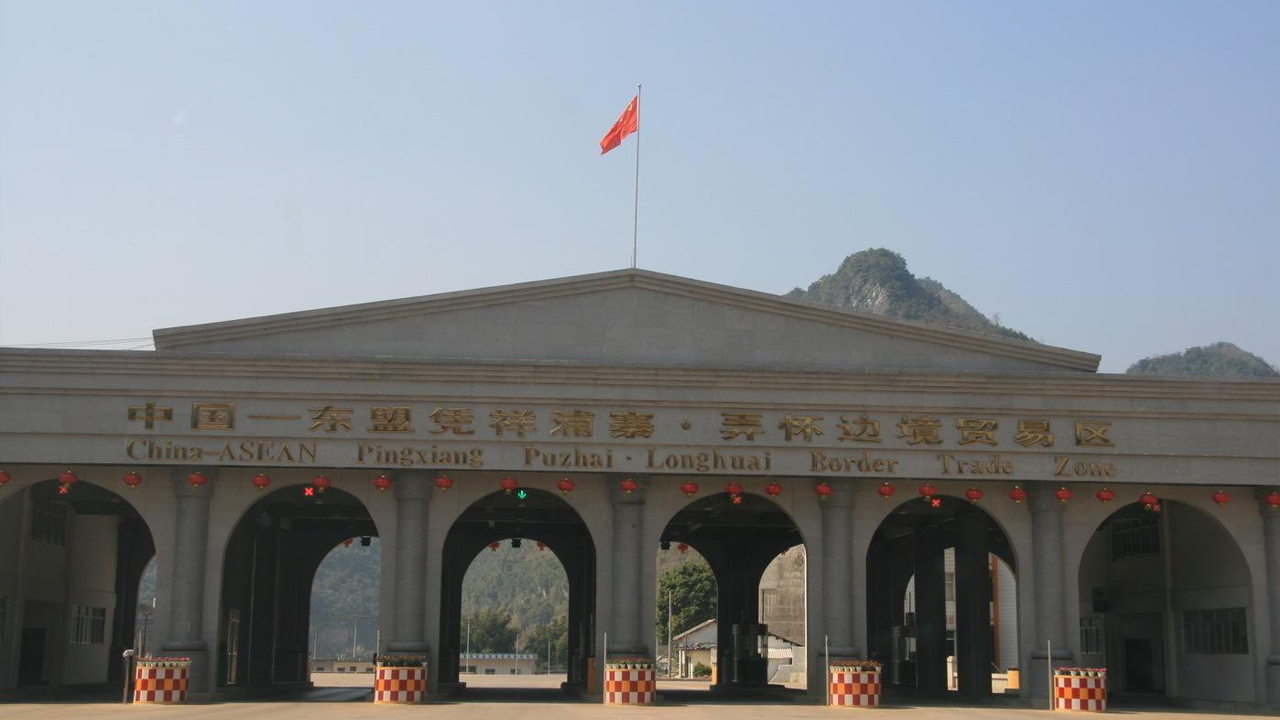 凭祥的友谊关,不仅是一个人员往来的繁忙口岸, 还是中越边境上最大的陆路贸易通道。2018年这里的出入境货运量280多万吨,相比2010年前翻了3倍都不止。后屋通关手续有严格要求,但在友谊关前,我们却看不到车来车往的景象,其中的奥秘就在于中国东盟自贸区凭祥物流园。