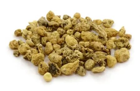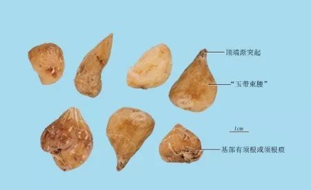 1.杜鹃兰的干燥假球茎呈圆球状尖圆形或稍扁平,直径1~2厘米。外表棕褐色或灰棕色,有细小皱折。顶端有一圆形的蒂迹;底郎凹陷处有须根,须根长约1~3厘米,粗1~2毫米;腰部有下凹或突起的环节,俗称"腰带"。假球茎周围被有或疏或密的金黄色丝状毛须及黑色细须。或已将须根及外皮均除去。质坚实,内心黄白色或乌黑色,粗糙。味淡,微香,遇水有粘性。以个大、饱满、断面黄白色、质坚实者为佳。