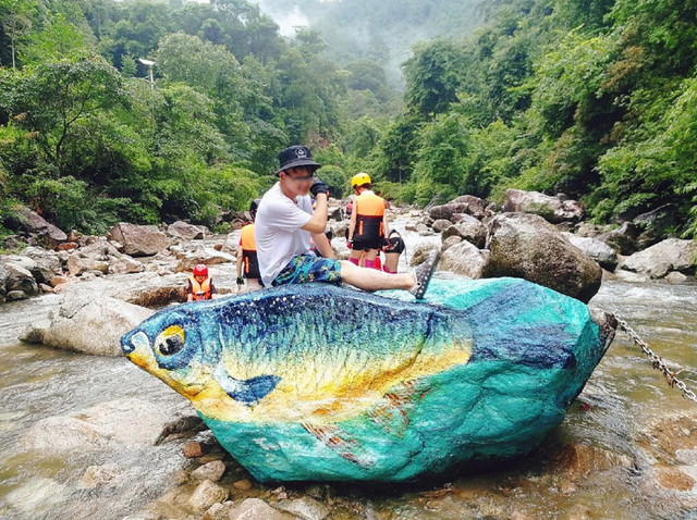 九龙江溯溪是以侏罗纪为主题,1公里路程中画有14副3D恐龙画,栩栩如生。九龙江瀑布也是九龙江溯溪的特色之一,沿着溪水,逆流而上,便是清凉与美景的馈赠,在清澈的河水前行,是一件浪漫而童真的事情。