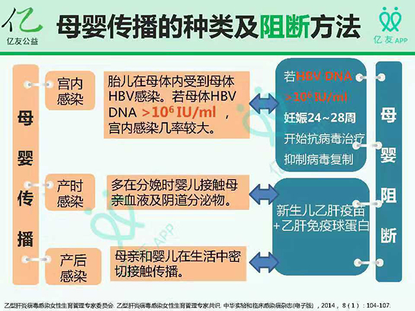《慢性乙型肝炎防治指南》(2015年版)中提到,妊娠中后期如果乙肝病毒DNA载量大于2 ×106 IU/ml,在与患者充分沟通、知情同意基础上,可于妊娠第24~28周开始给予孕妇替诺福韦、替比夫定或拉米夫定,降低病毒载量可减少母婴传播。