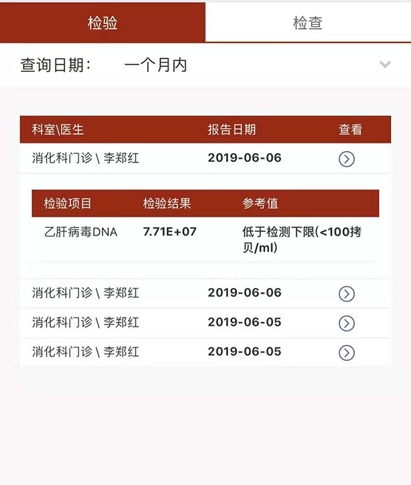 卓美芳丈夫乙肝病毒DNA检查。受访者供图