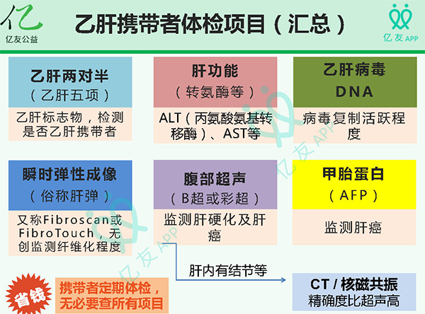 乙肝病毒携带者体检项目。 公益组织亿友制图