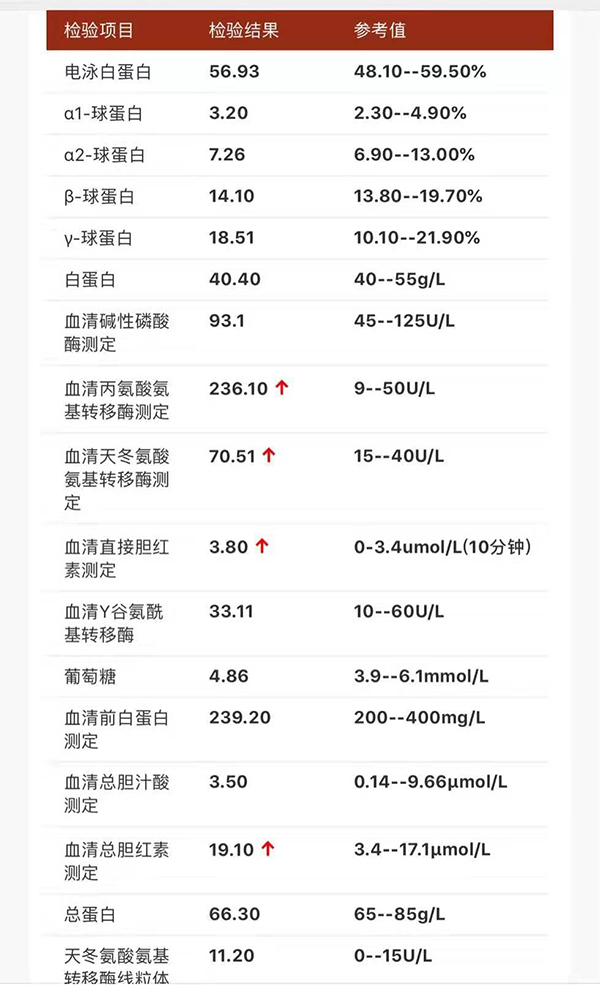 除了单位每年例行体检,卓美芳的丈夫并没有主动做过乙肝相关的检查。直到今年,由于工作的忙碌与劳累,在5月单位例行的体检中,他的肝功能出现了异常,血清丙氨酸氨基转移酶(即谷丙转氨酶)超过正常值四倍以上。