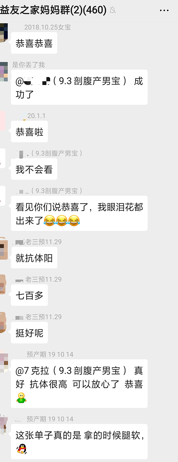 乙肝妈妈群里为一个母婴阻断成功的妈妈祝贺。