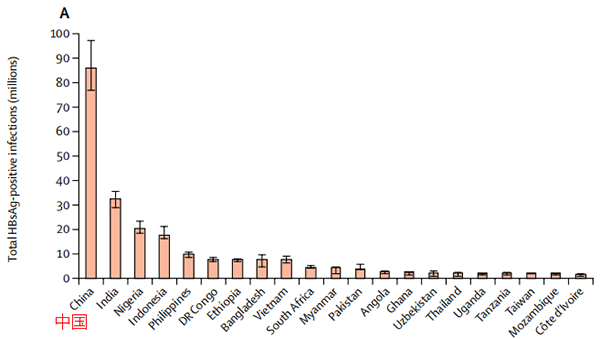 2018年《柳叶刀》发布数据,2016年中国乙肝病毒总感染人数位居世界首位。