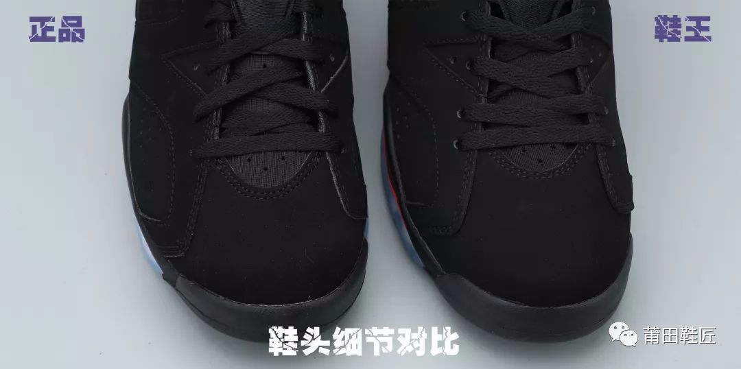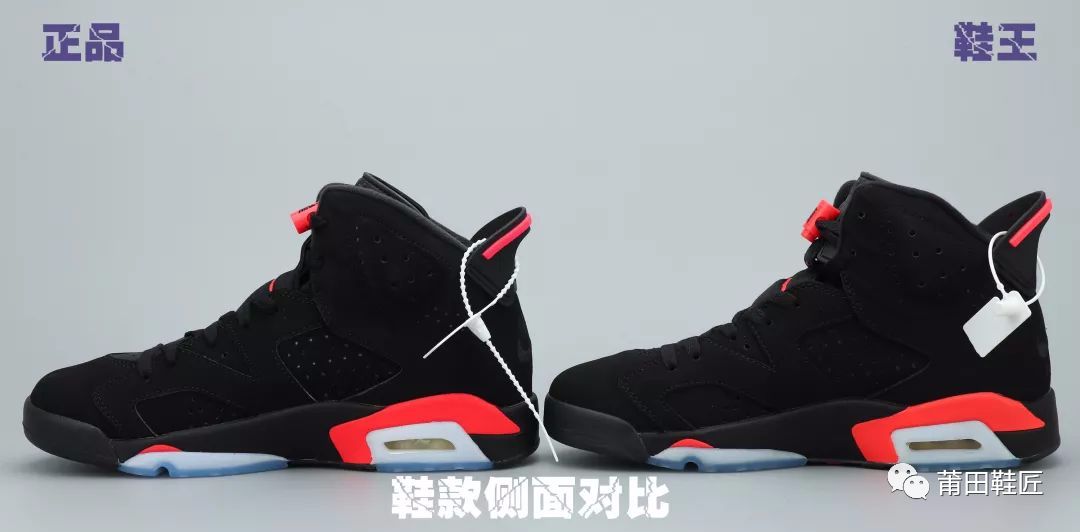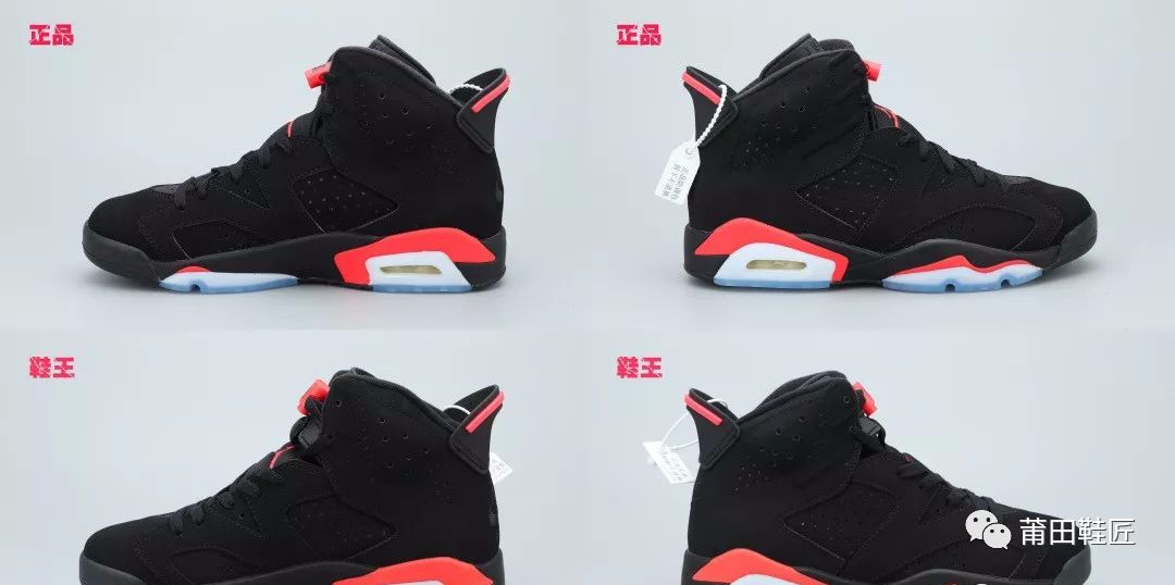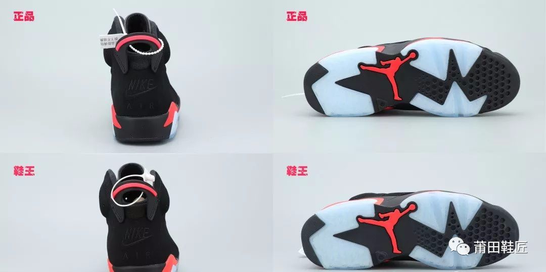 依然是黑色牛巴戈鞋面,3M反光细节,以及冰蓝色水晶底面。最大的区别在于启用了元年Nike Air鞋跟,红色的中底让视觉效果更加有冲击力。现在=跟随鞋匠来看看这鞋的真假对比吧!