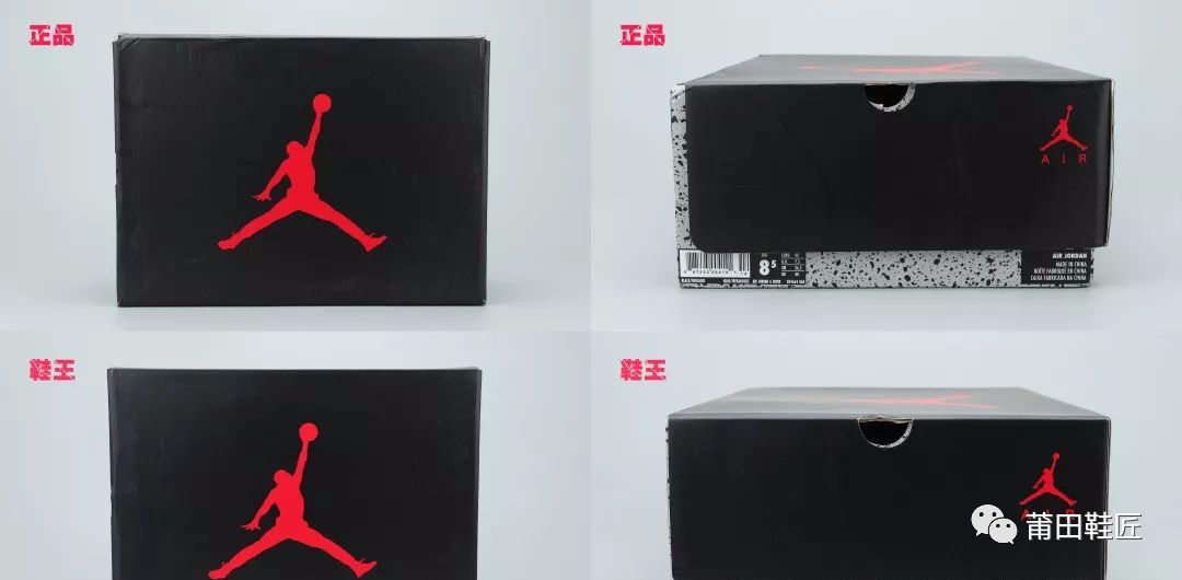 首先,来看看鞋盒,经典的红黑鞋盒,鞋盒正面的大红飞人标志,给人一种非常熟悉的感觉。侧面鞋盒标签上是鞋盒的具体信息。两个鞋盒基本上没有区别,请你们自己比较一下。