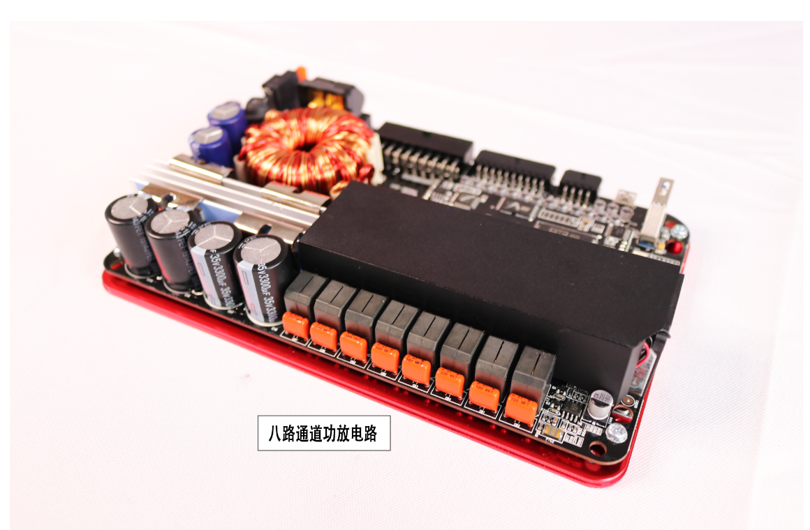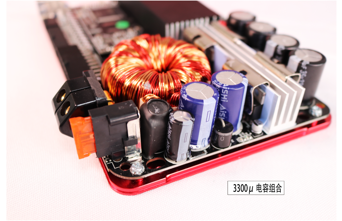 卓美的电路板也是模块化直接做上去,它的耦合因为体积的关系和热度的关系,所以直接做成贴片的这个固态化。电源部分是一个3300μ电容组合.