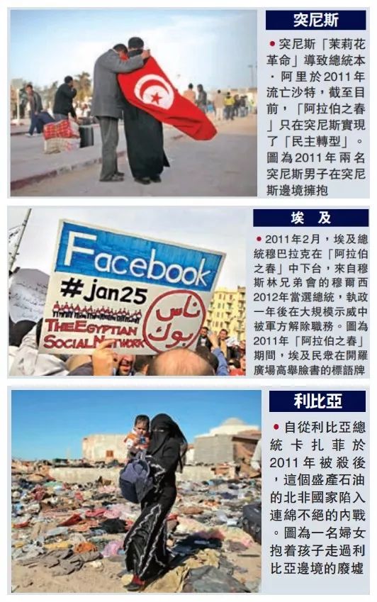 一是经济形势每况愈下。阿拉伯民众起身造反,经济困顿是主要动因。但“阿拉伯之春”数年后,阿拉伯世界的整体经济状况反而今不如昔。据国际劳工组织数据,2011年中东剧变时,中东地区失业率为25%,目前已升至30%,是世界平均失业率的倍数。“阿联酋战略论坛”根据世界银行、联合国和世贸组织的数据得出结论:“阿拉伯之春”及随后政局动荡,使相关国家付出8300亿美元的代价。中东比“阿拉伯之春”之前更不稳定、更看不到希望。