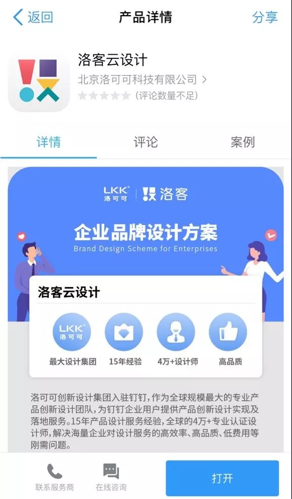 两款产品全部搭载在钉钉的开放平台上,目前,企业在钉钉添加“洛客云设计”应用后,即可通过首页“0元做设计”入口体验“洛”智能设计,输入企业需求信息就可以3秒设计出LOGO。更低的创新门槛,意在让每个需要创新创造力落地的企业都可享受到智能设计的高品质服务。
