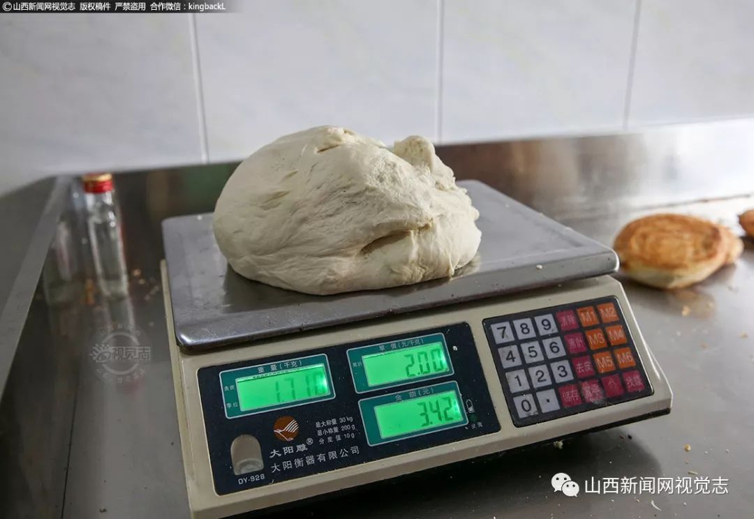 为了让顾客吃到量足酥脆的饼子,专门有个称面的台秤。