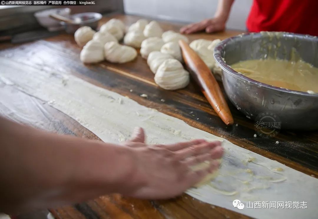 匀称的面剂子擀成薄如纸张的面片,抹上张师傅家特制的酥油、小茴香、食盐等原料,让你品尝不一样的特色口味。