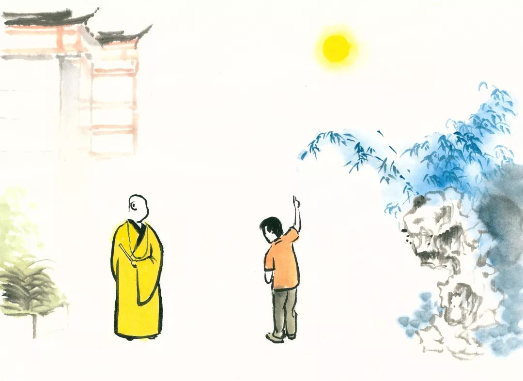 如果有人用手指着月亮给别人看,那人应循着手指去看月亮。