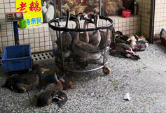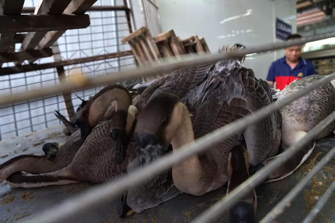 在市场里很轻易就能了解各个家禽的地位。鹅都是雄赳赳气昂昂,站在属于自己的框子里。鸭子只能趴地上,臭烘烘的,跟鹅没法比。