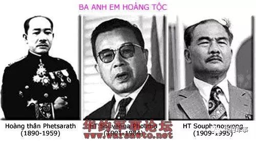 兄长佩差拉亲王是老挝最后的一个副王(左),同父异母兄弟梭发那·富马亲王(中)