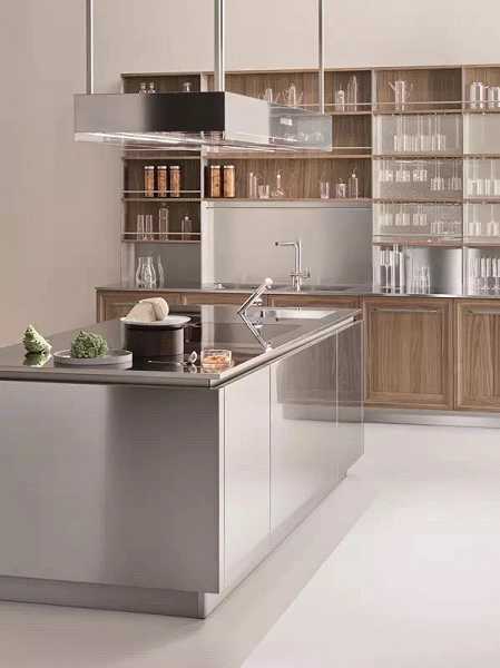 大部分大户型选择开放式厨房时,都会首选设立厨房岛,美观度也更高,既可以用作就餐区域,也可以作为备膳区域。但这种布局对于户型的要求不低,不过只要面积合适,通过设计师的设计应该都能实现。